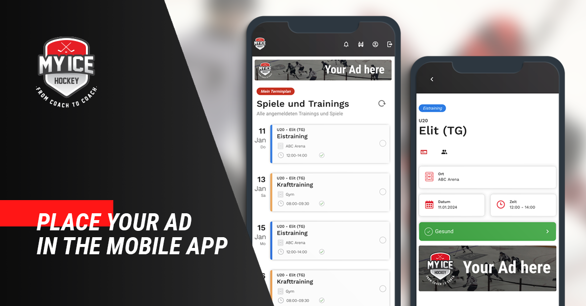 Publicité ciblée sur le hockey sur glace : placez vos annonces dans l’application mobile My Ice Hockey Player et touchez une communauté active et passionnée de sport. Idéal pour : les camps, les produits alimentaires, les accessoires de hockey sur glace, les services, etc. Profitez dès maintenant de conditions spéciales ! Contactez-nous.